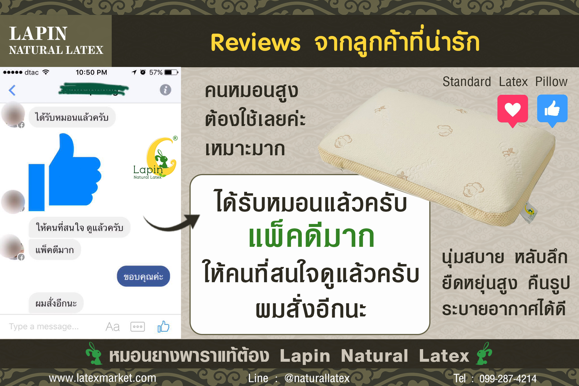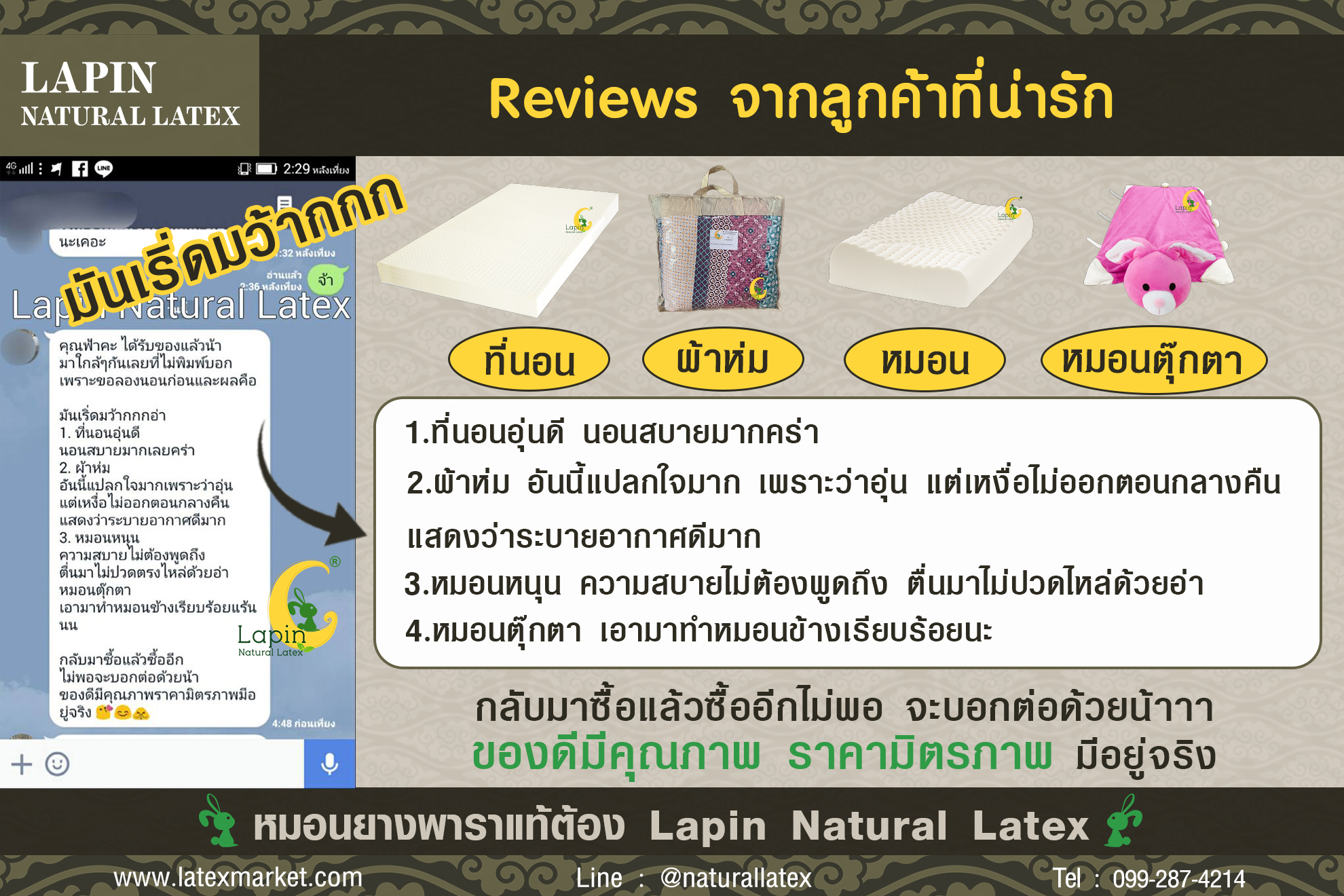 สอบถามโปรโมชั่น / สั่งซื้อ ปลีก-ส่ง / Line ID: @naturallatex